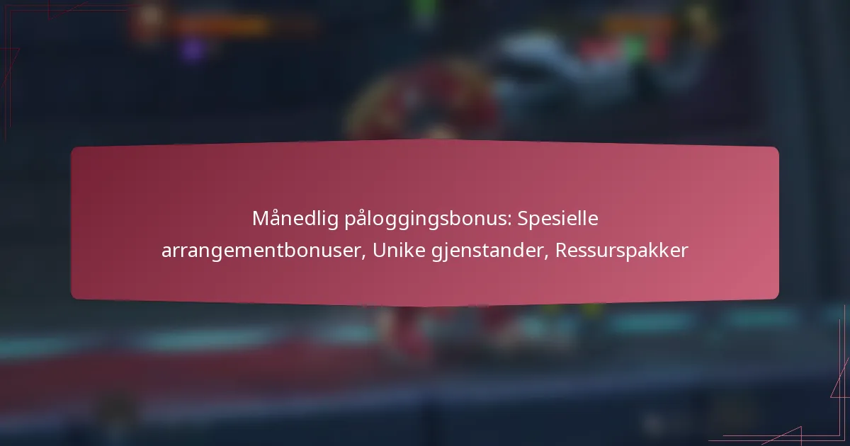Månedlig påloggingsbonus: Spesielle arrangementbonuser, Unike gjenstander, Ressurspakker
