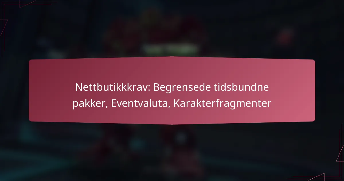 Nettbutikkkrav: Begrensede tidsbundne pakker, Eventvaluta, Karakterfragmenter
